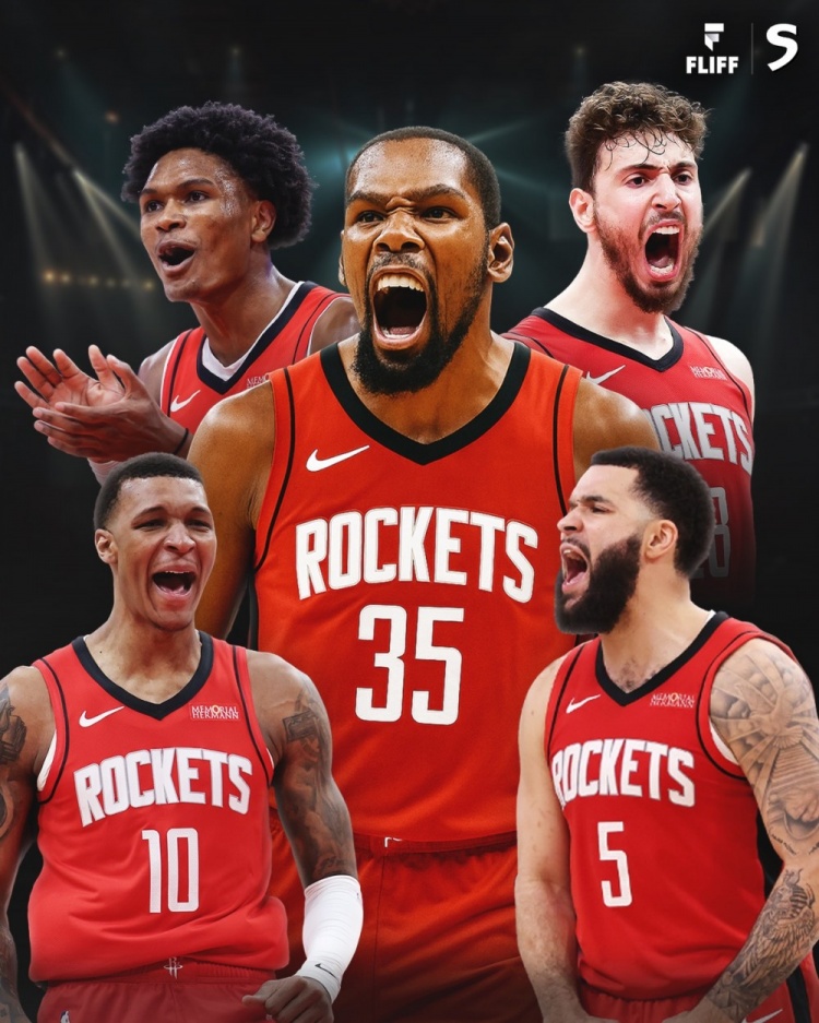 尽管杜兰特加盟前阵中没有超级球星,但火箭拥有以全明星中锋申京为首的年轻天赋阵容,以及可能是联盟最独特的天赋球员,或许已是除文班亚马外的最佳防守者阿门-汤普森。这支球队坐拥顶尖教练、顶尖防守体系,如今又增添了顶尖得分手。
