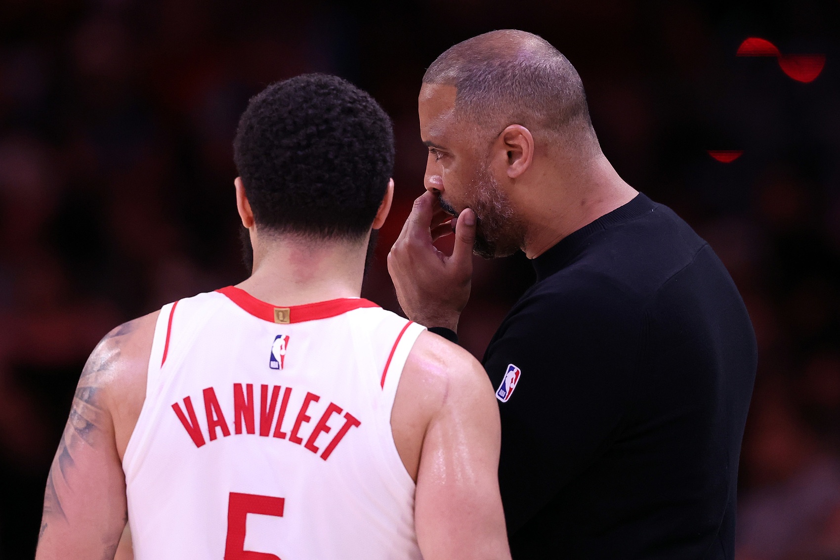 对火箭来说,范弗里特可能赛季报销是灾难性的,因为他们本身就存在进攻发起手贫瘠的问题,原本你期待的是范乔丹+升级的阿门和申京+能消化一些持球攻的KD+稍微帮点忙的谢泼德和霍勒迪来解决这个问题,但现在,最重要的一环直接倒了。