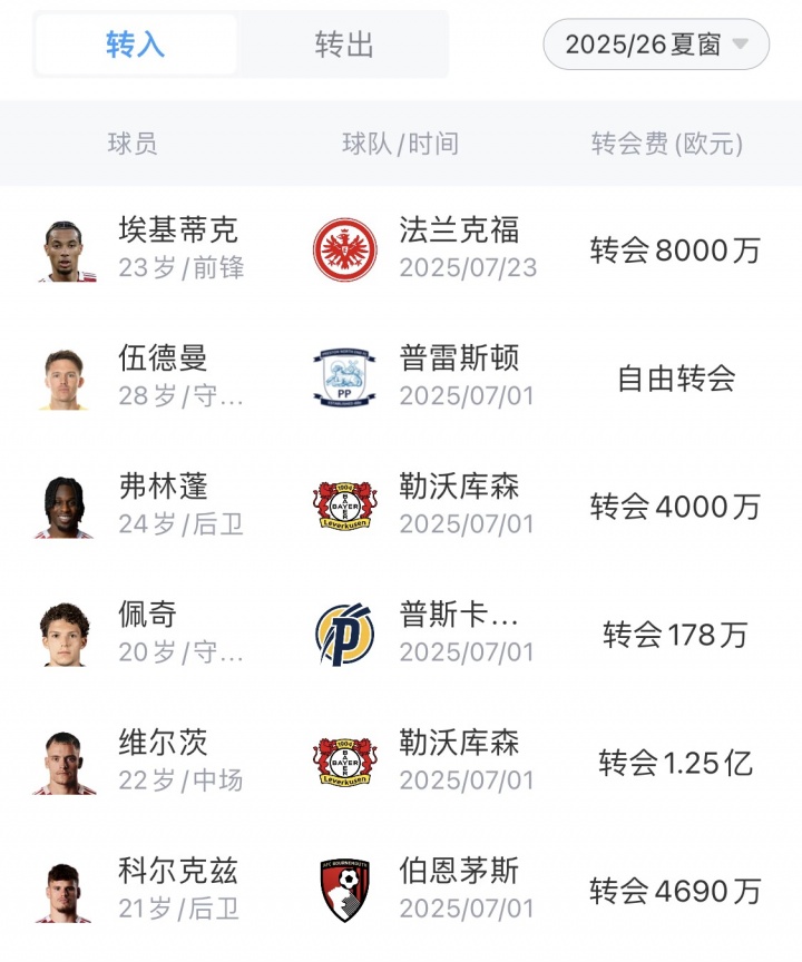 今夏利物浦一反常态,花费2.9368亿欧引入6人,其中包括1.25亿欧签维尔茨,以及从伯恩茅斯引进科尔克兹。