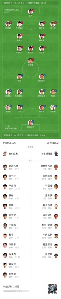 U22国足替补:1-于金永、12-霍深坪、2-杨希、3-张一轩、15-彭啸、17-鲍世蒙、6-徐彬、8-陈哲宣、13-希尔扎提-努尔、22-毛伟杰、23-李新翔、18-朱鹏宇